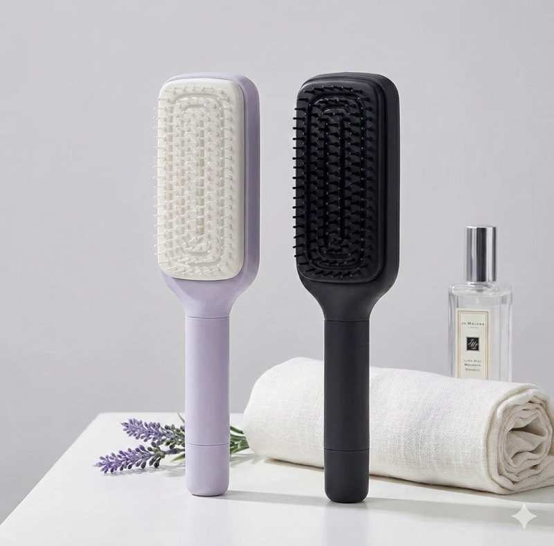 Experience the ultimate in hair care convenience with our innovative self-cleaning hairbrush. Featuring advanced retractable bristles that automatically remove tangled hair with a single click, this revolutionary brush keeps your hair healthier and your styling routine faster. Perfect for all hair types, it combines superior detangling power with effortless maintenance—no more manual cleaning required.